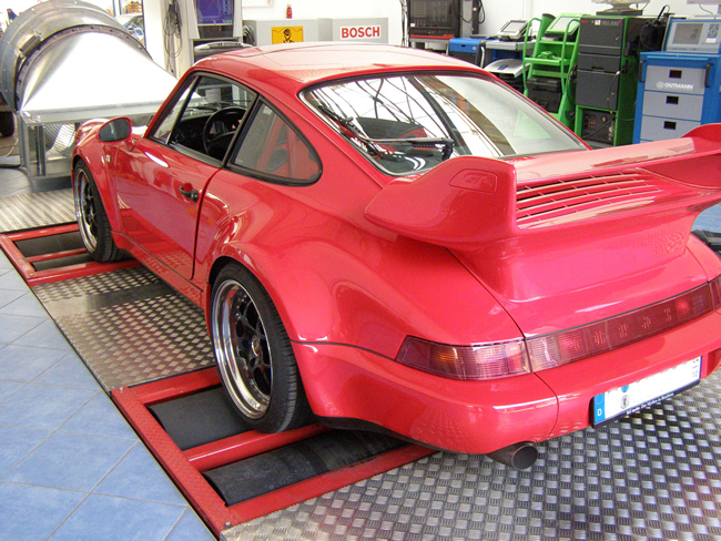 Bei einer Leistungsprüfung wird die Leistung gemessen, die an den Rädern eines Fahrzeuges ankommt. Diese Leistung ist niedriger als die Motorleistung, da es bereits im Antriebsstrang zu Verlusten kommt. Üblicherweise wird daher pauschal ein Wert von ca. 20% der gemessenen Leistung zu jeder Messung addiert. Dieser Mangel an Präzision widersprach jedoch unseren hohen Ansprüchen.