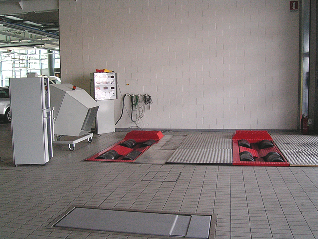 Bei beengten Platzverhältnissen empfehlen wir die DUO-Version: Prüfung des Frontantriebs und des Heckantriebs in nur einer Prüfbox! In der zukunftsorientierten Werkstatt unverzichtbar: die Duo-Ausführung für Front- und Heckantrieb. Zwei Prüf- und zwei Messrichtungen in einer Standard-Box! Vorhandene Fundamente können weitgehend genutzt werden.