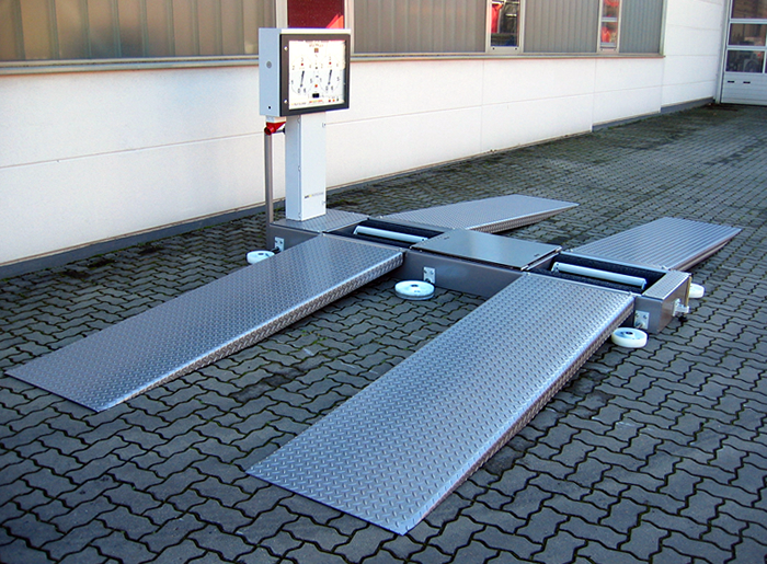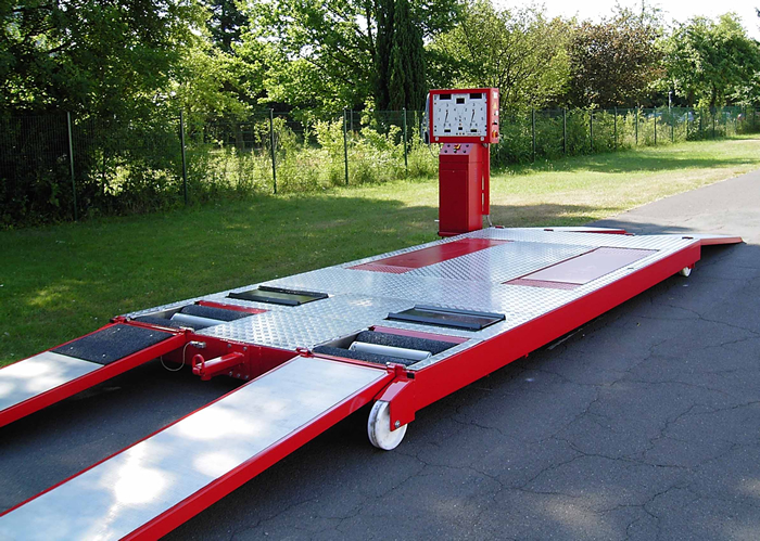 Rollenbremsprüfstand, Fahrwerktester, hydraulische Scheren-Hebebühne - wählen Sie aus verschiedenen Modulen Ihre maßgeschneiderte Lösung. Sparen Sie sich aufwändige Fundamentarbeiten und Probleme bei gemieteten Objekten - werden Sie mobil!